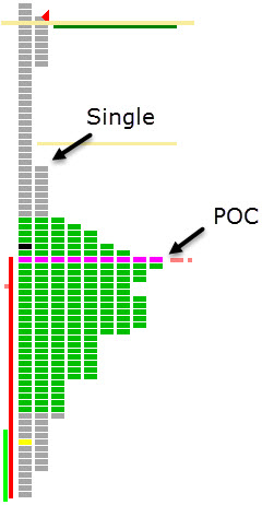Jak TPO grafy používat? Podobně jako s jinými indikátory, můžete na internetu nalézt řadu tipů, jak obchodovat prakticky mechanické patterny právě z market profilů. Nejčastěji jsou to mechanické odrazy od tzv. singlů (míst, kde se TPO graf rozšiřuje z úrovně jednoho sloupce na dva a více) a POC (vrcholů profilů):