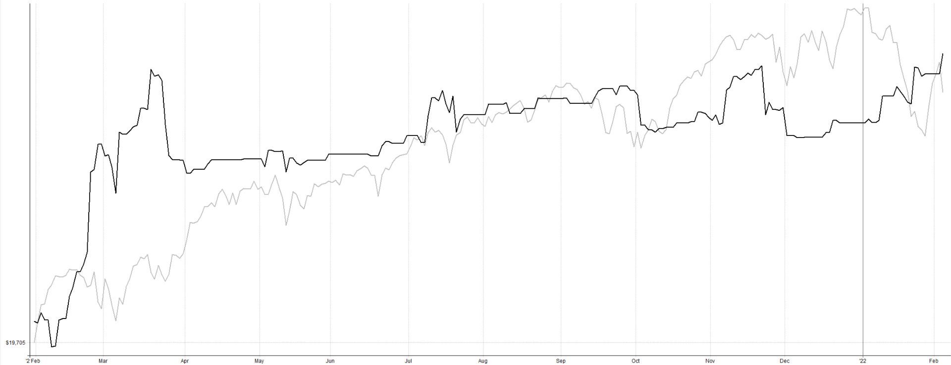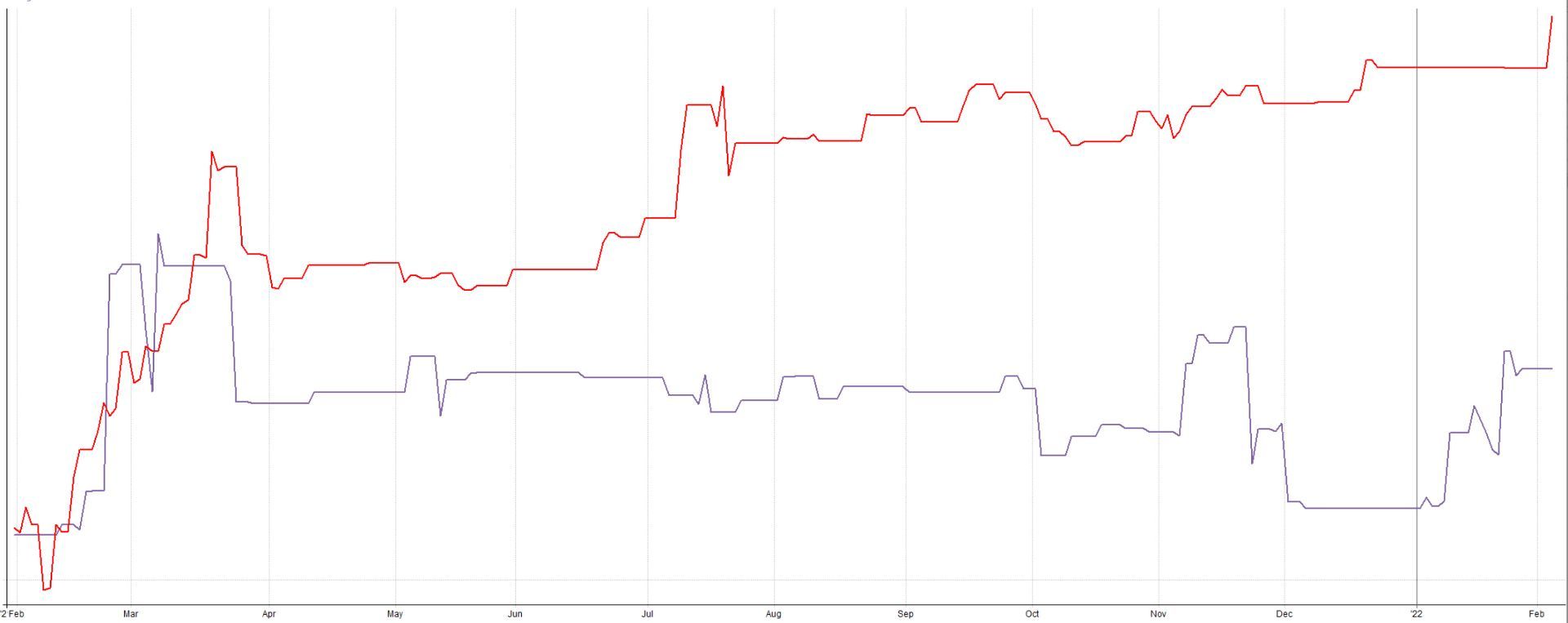 Červená linka představuje zisky shortů, šedá longů. Long i short pozice byly tedy ziskové, ale výrazně více zisků přišlo ze shortů. Což je skvělá zpráva, protože ve svém portfoliu používám Finwin dnes jako jednu ze složek diverzifikace akciových portfolií, které strategie spíše nakupují.