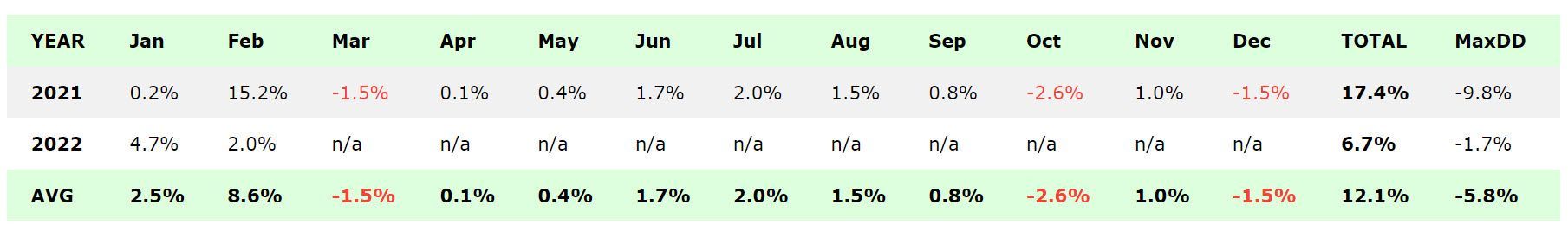 Dobře je vidět, jak strategii svědčí volatilita v trzích. Letos se strategii slušně daří v momentech, kdy si indexy procházejí propady. Proto tento přístup vnímám jako dobrý pro diverzifikaci pomalejších swingových strategií například ze swingového workshopu.