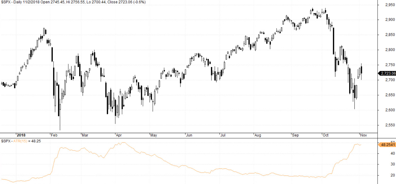 Pravděpodobnostní tendence vycházející z divergence mezi S&P 500 a Russell 2000 zmiňovaná v minulém reportu tentokrát nevyšla a akciové indexy prakticky celý říjen klesaly. Volatilita se vrátila na úroveň, kterou jsme v trzích zažívali na začátku roku: