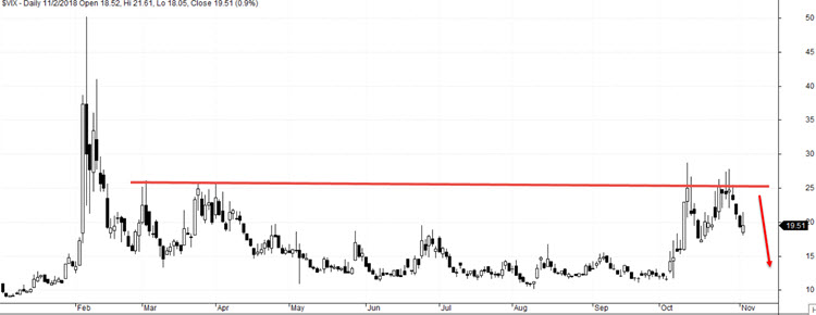 Mj. mám otevřené pozice v shortu volatility, které jsem otevíral zhruba před týdnem, když byl VIX kolem 25: