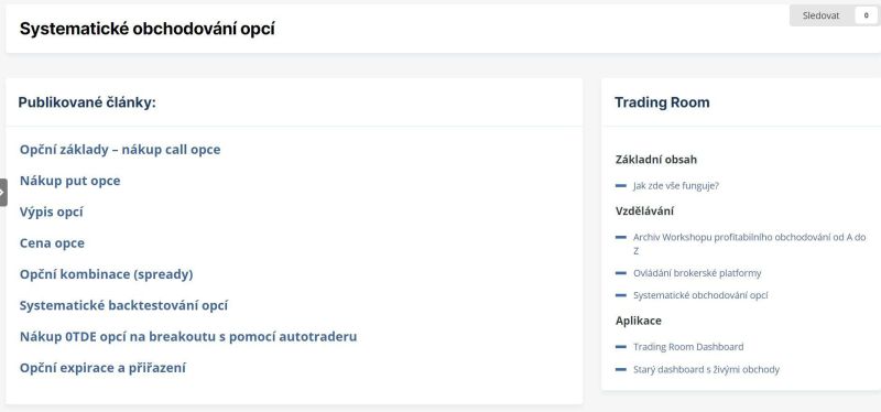 Mimochodem – pokud se chcete do celého procesu také zapojit, zvažujete zapojení do Trading Room a obáváte se, že například o opcích nic nevíte, tak zde naleznete i nový minikurz systematického obchodování opcí, ve kterých průběžně sumarizujeme potřebné informace: