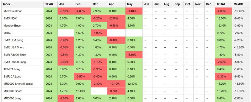 Aktuální výkonnost jednotlivých modelů k 16. 5. 2024 je tato: