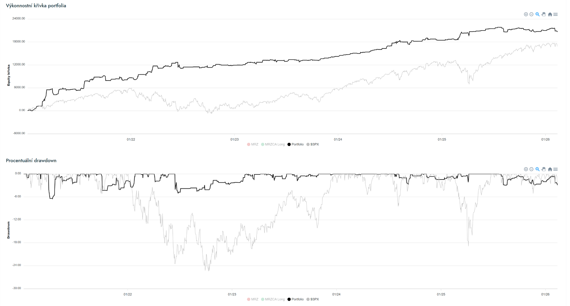 V ročním přístupu do Trading Room naleznete od podzimu 2025 také rozsáhlý výukový kurz diskutující vývoj a pravidla long mean reversion strategie MRZ. Tu sám obchoduji jak na amerických, tak kanadských akciích.