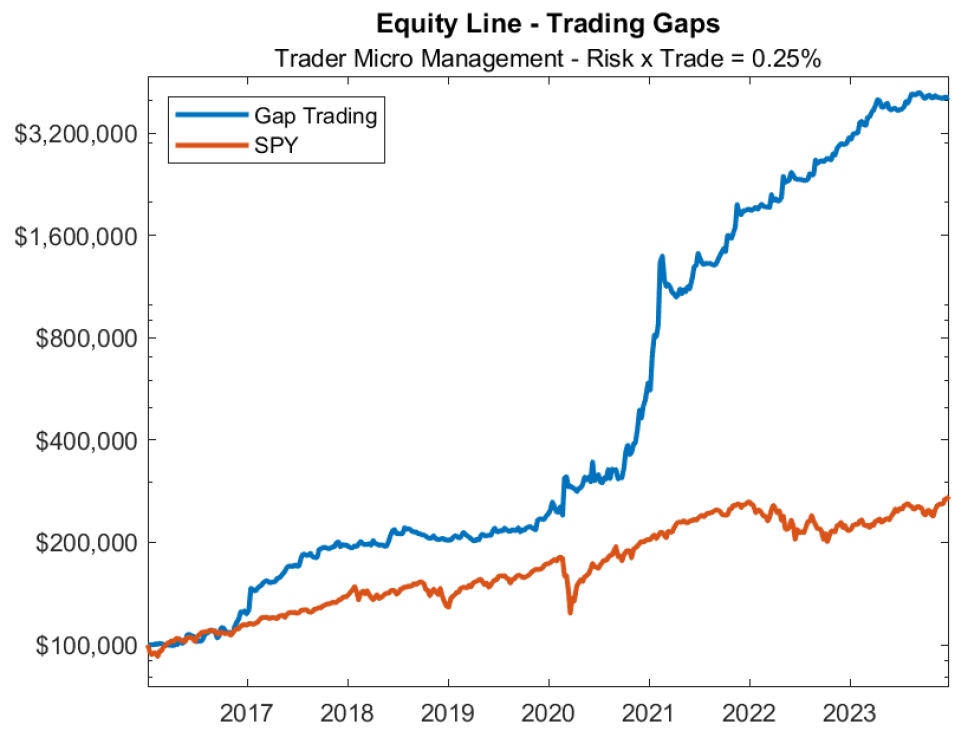 V případě SPY by byl profit 82 534 dolarů. V rámci portfolia 602 474 dolarů. Poplatky jsou v portfoliu započítány. Komise hodně naskakují zejména u intradenního long/short breakoutu. Celkem jsou ve výsledku započítány komise v hodnotě 37 375 dolarů. Realističnost testu pro mě zaručují započítané skluzy v plnění (celkem 4 ticky na obchod – 2x na otevření a 2x na uzavření), které se nasčítaly do 116 499 dolarů – tedy 3x více než komise, což je z mé praxe více, než je třeba. Všechny tyto částky jsou tedy do výpočtu zahrnuty, a přesto portfolio generovalo průměrně +32,52 % ročně.