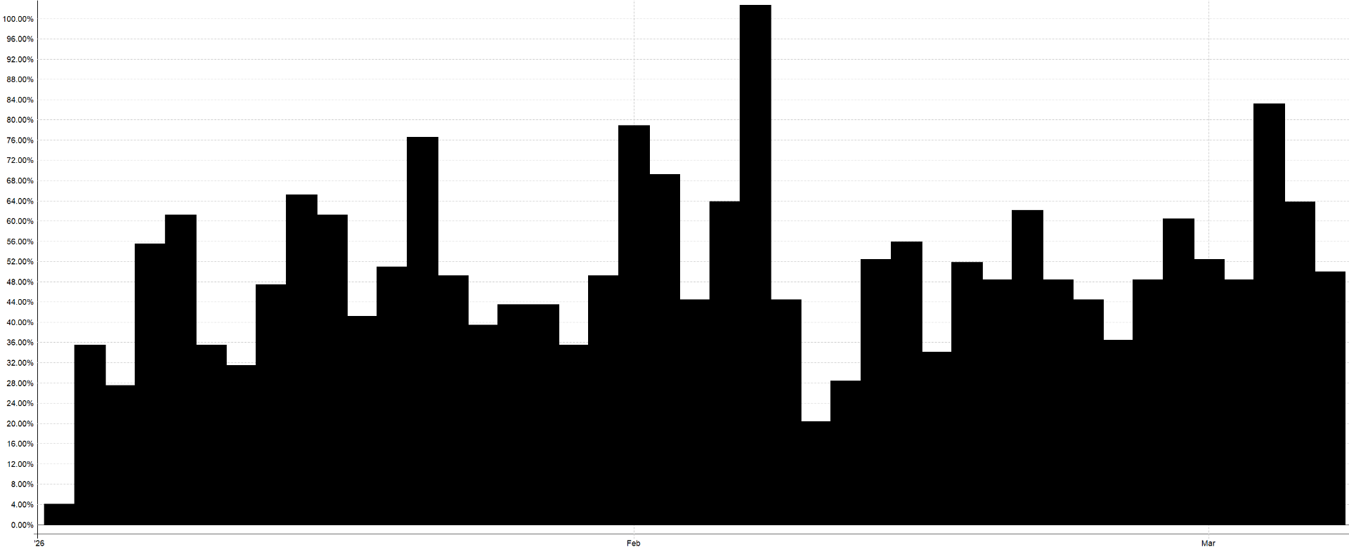 Proč na tom záleží? Pokud nám na účtu leží volný kapitál, můžeme nasazovat další, nekorelující strategie a celkovou výkonnost portfolia posouvat dál, aniž bychom dramaticky zvyšovali riziko. Letošní průměrné využití kapitálu u výše zmíněného miniportfolia (čistá alokace dolarů přes noc) je pouhých 49 %. To znamená, že nejenže obchodujeme bez finanční páky, ale ani zdaleka nevyužíváme celý náš účet. Máme tak naprosto volné ruce k bezpečnému rozšiřování portfolia – například o intradenní breakoutové strategie, což je přesně to, co v praxi děláme.