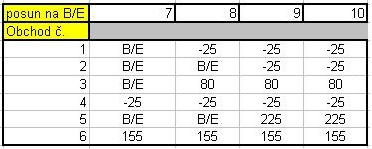 Náš způsob je jednoduchý, posun na B/E provádíme při dosažení 7 bodů (platí pro trh YM). Ale mimo tento posun si do zvláštní tabulky ke každému obchodu píšeme, co se stane, pokud posuneme o 8, 9, 10 bodů. Někdy nás při brzkém posunu trh vyhodí předčasně, někdy nás ale ochrání před ztrátou, protože v době kdy se trh otočí a my bychom třeba při posunu o 8 bodů byly ještě na SL už jsme při brzkém posunu na B/E. Pokud tedy nastane případ, že máme pochybnosti jestli toto děláme dobře, stačí opět nahlédnout do statistik a hned si můžeme spočítat co je lepší.