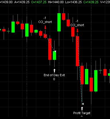 V tuto chvíli máme v našem grafu aplikovánu strategii, kterou jsme si vytvořili v minulém díle seriálu. V grafu se však nevytvořily žádné prodejní signály. Proč? Protože naše jednoduchá testovací strategie neobsahuje žádné ukončení otevřené pozice, obsahuje pouze podmínku pro vstup do krátké pozice.
