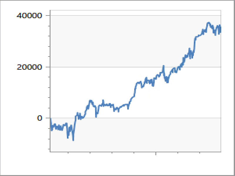 Následující obrázek není backtest, ale takzvaný forward test. To znamená, že algoritmus simuluje již podmínky živého obchodování a přímo před každým obchodem udělá zcela novou analýzu a zcela nové rozhodnutí o tom, jak se zachovat pro příští obchod.