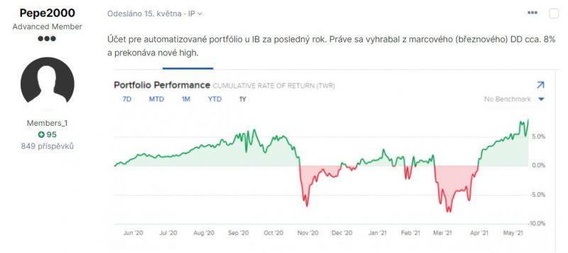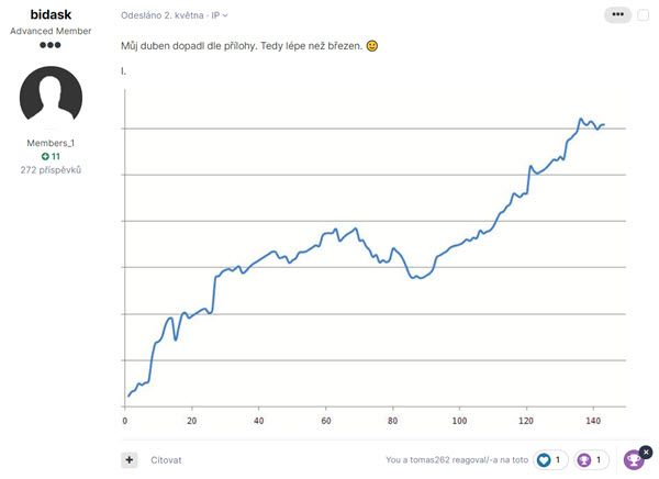 Super inspirací může být na Finančníkovi vlákno Aktuálních výkonností strategií publikované v TechLabu, kde řada obchodníků z Finančníka sdílí své živé výsledky a je vidět, „že to jde“. Takto například někteří obchodníci reportovali dění na svém účtu v květnu: