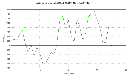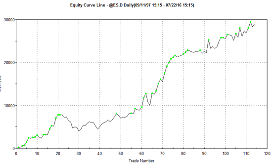A naopak – pokud bude VIX větší, nebo roven 15, bude equity křivka vypadat následovně: