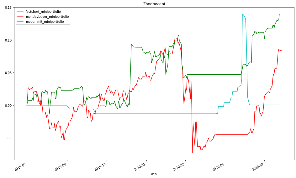 Samozřejmě, že diverzifikace přes dvě strategie není dostatečná, je to spíše „důležitý začátek“. Ale i tak je zde vidět jeho praktický dopad. Ten je nyní zkreslen tím, že v našem „miniportfoliu“ z workshopu jsme přiřadili strategii Mopull Limit (té aktuálně méně vydělávající) 2/3 kapitálu a aktuálně lepší strategii Monday Buyer jen 1/3 kapitálu. Celkové výsledky spojeného obchodování pak vypadají takto: