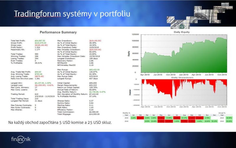 • Systémy jsem vybíral z 50 000 systémů s profit factorem min. 1.8 a minimálně 100 obchodech v IS.