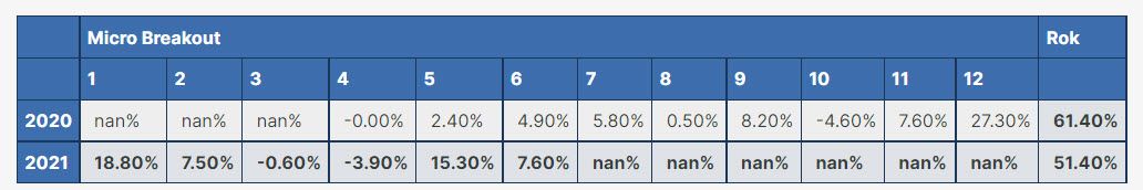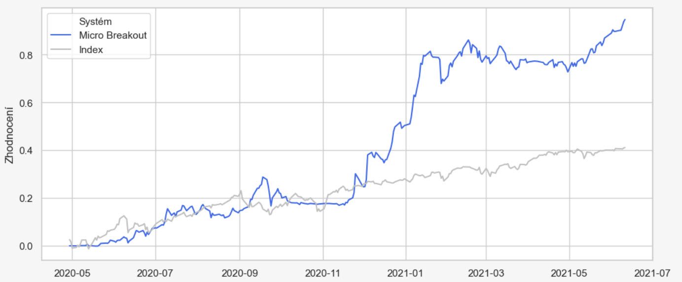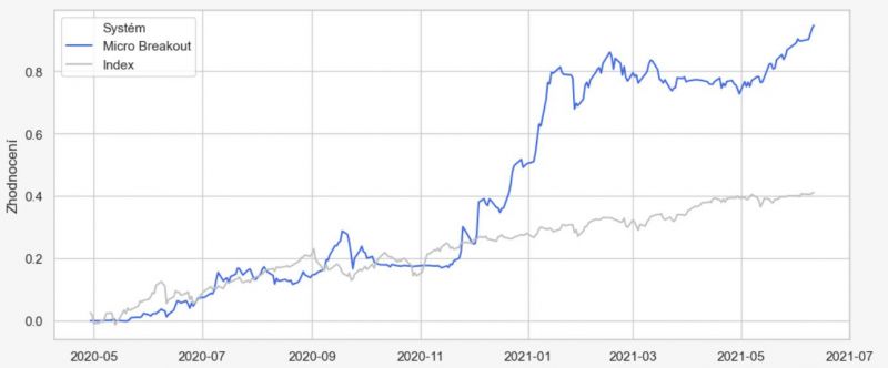 V článku jsem uvedl: „V případě malých účtů může být zajímavé se u swingových breakout přístupů zaměřit na levnější akcie s nižší likviditou. Ty nemohou obchodovat větší hráči, protože v nich reálně nelze otevírat větší pozice, a lze tak v této oblasti nalézt často velmi zajímavé příležitosti. A de facto je to jedna z mála oblastí tradingu, kde malý kapitál představuje konkurenční výhodu (takže je škoda ji nevyužít).“ A přestože se nakonec následné měsíce nesly vesměs v nižší volatilitě, popisovaný princip nadělil ještě více, než jsem doufal. Systém, který nakonec obchoduji pod názvem MicroBreakout, od svého spuštění vygeneroval výrazně přes 100 %: