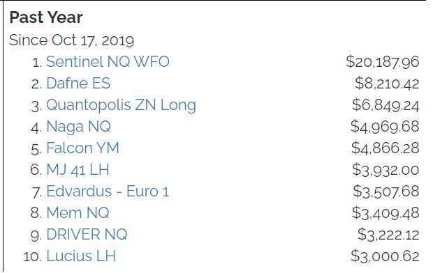 Bohužel na problém s neadekvátně vysokou pákou budete narážet snad u všech poskytovatelů signálů. Jednou z velmi známých společností zprostředkovávajících pronájem strategií je společnost Striker.com. Na jejich stránkách můžete získat seznam „nejlepších strategií“ např. za uplynulý rok, kde jsou strategie řazené podle zhodnocení. Tedy podle toho, kolik vydělaly vůči doporučenému kapitálu. Druhá nejlepší strategie (s nejvyšší výkonností za poslední rok) v kategorii do 10 000 dolarů je například nyní strategie se jménem Dafne ES: