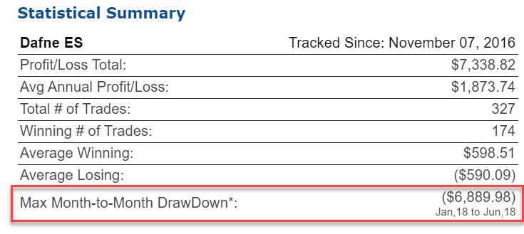 Je potřeba připravit se na skutečnost, že většina strategií funguje se sharpe ratio 1 až sharpe ratio 2. Velmi zjednodušeně to znamená, že očekávatelný nejvyšší drawdown je někde na úrovni 50–100 % ročních výnosů. Tedy že pokud strategie vydělá 10 000 dolarů za rok, můžeme nejvyšší drawdown očekávat zhruba na této úrovni (dobře je to vidět na screenshotu z výkonnosti strategie Dafne ES, kde to přesně vychází v daných mezích). Pokud se strategie obchoduje jen pár let, je možné, že strategie jsou zatím „vychýlené“ ve prospěch výnosů, je ale velmi pravděpodobné, že toto se časem „srovná“.