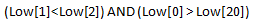 Místo Open a Close používám hodnoty Low z předchozích dvou dnů. Druhá část pravidla se snaží o vstup v souladu s trendem.