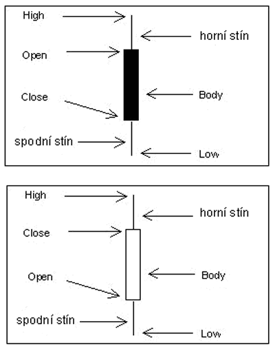 V případě svíčkového grafu je třeba věnovat pozornost barvě těla svíčky: