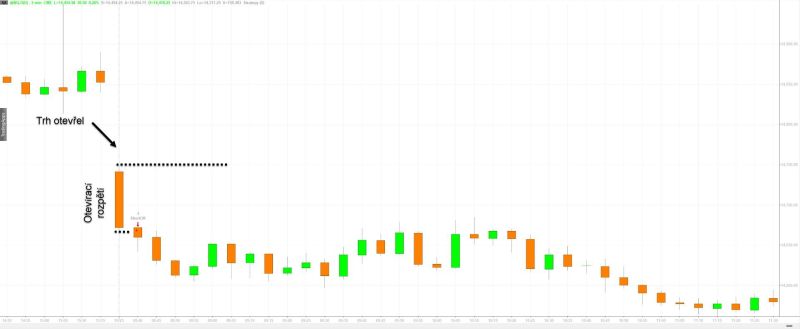 Za otevírací rozpětí se považuje maximální a minimální cena sledovaného intervalu trhu po jeho otevření. V případě zmíněné studie „Může být day trading skutečně profitabilní“ jde o prvních pět minut obchodování. Pokud si zobrazíme trh skrz pětiminutový graf, pak otevírací rozpětí představují High a Low první úsečky.