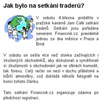 (klikněte pro plnou zprávu)... V sobotu se sešla více než stovka začínajících i zkušených obchodníků, aby diskutovali a vyměňovali si zkušenosti o obchodování jak ve sférách komodit, tak forexu. Celý večer se nesl v duchu přátelské a tvůrčí atmosféry ...