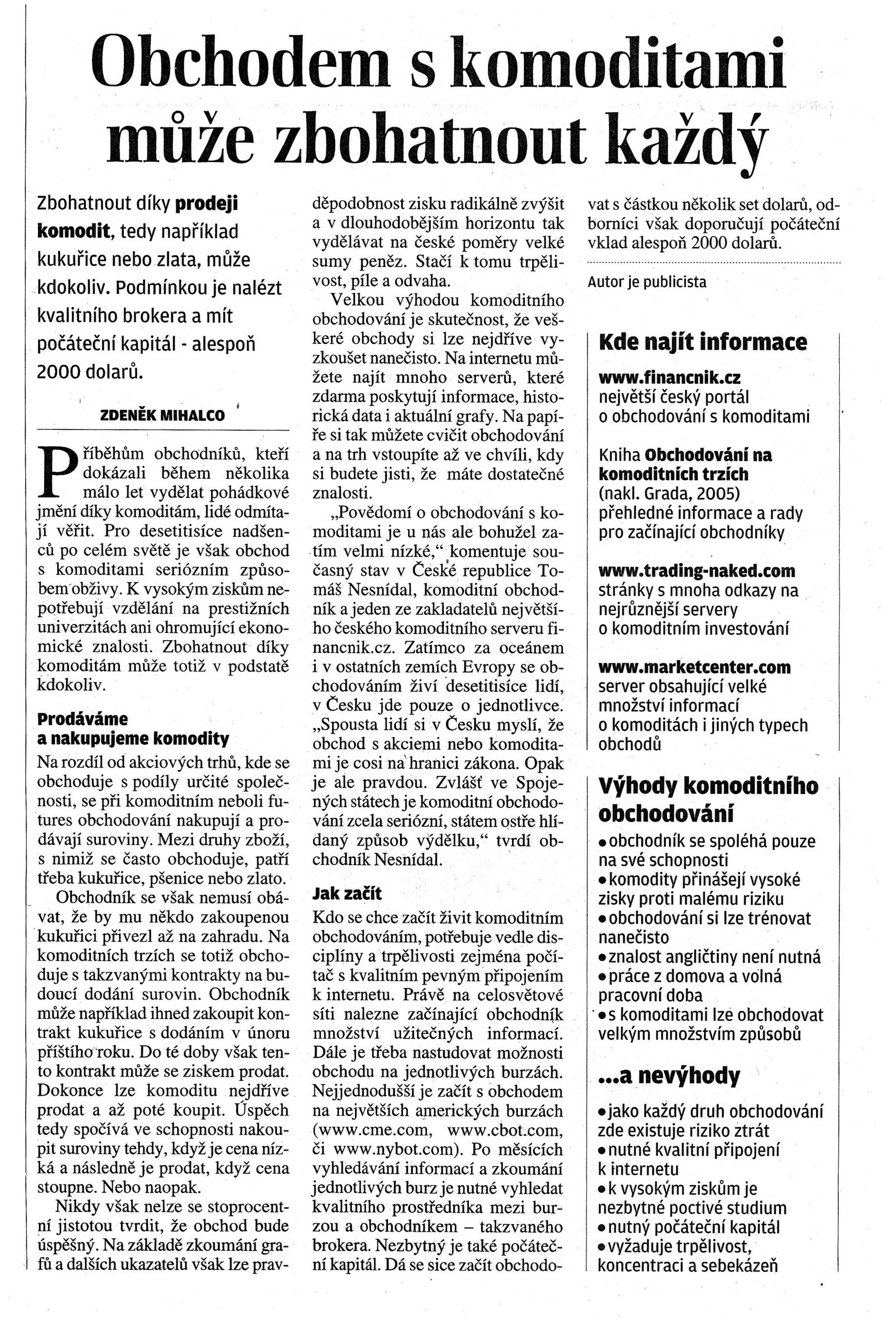 ... www.financnik.cz - největší český portál o obchodování s komoditami ....
