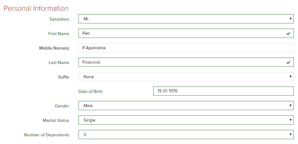 V prvním stránce formuláře je potřeba zadat osobní informace:
