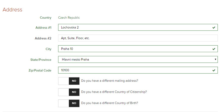 Pokud máte jinou doručovací adresu, klikněte na volbu Do you have a different mailing address? A vyplňte doručovací adresu stejně, jako jste nyní vyplňovali adresu trvalého pobytu.