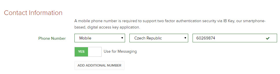 Patrně budete volit Mobile = mobilní telefon. Následuje identifikace země a samotné telefonní číslo.