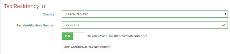 Volbu Do you have a Tax Identification Number odškrtněte na NO jen v případě, že jste si jisti, že nemáte žádné daňové identifikační číslo.