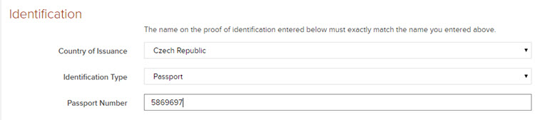 Ve volbě Country of Issuance zvolte zemi, která doklad vystavila.