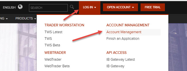 Důležité upozornění na začátek: Celý formulář se skládá z pěti částí a je poměrně dlouhý. Každou stránku je potřeba hlavně potvrdit tlačítkem CONTINUE – tím se uloží jakékoliv zapsané údaje. Následně můžete práci přerušit a k formuláři se vrátit přes hlavní stránku www.interactivebrokers.com. Zde klikněte na LOG IN a vyberte Account Management. Po zadání vašeho uživatelské hesla/jména (které jste si vytvořili v první fázi registrace, se dostanete zpět k rozpracovaným formulářům: