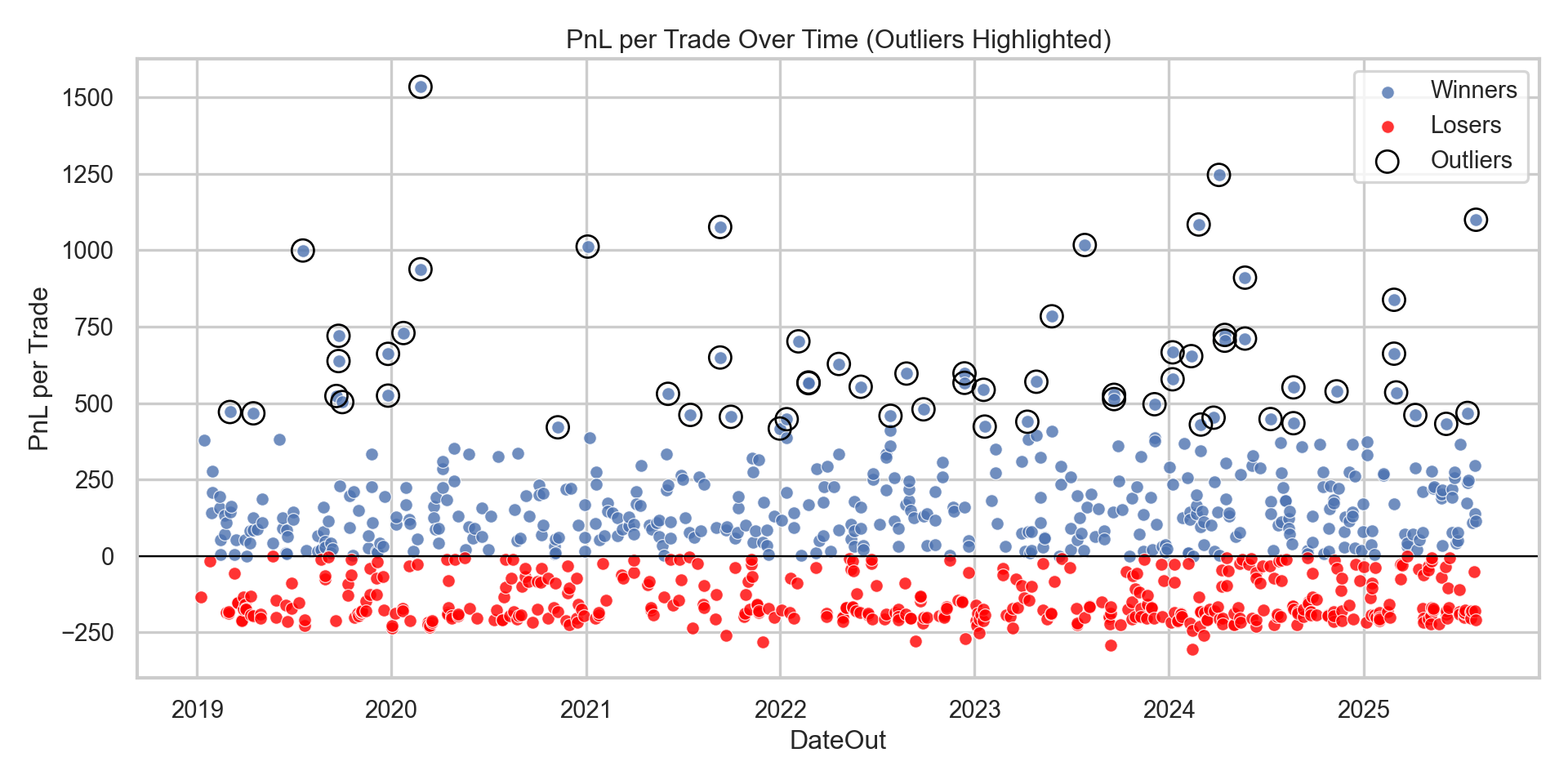 Proč většina obchodníků na trzích prodělává, i když mají k dispozici funkční systém? Pátrají po "svatém grálu", ale skutečný problém není ve strategii, nýbrž v chybějící disciplíně a důvěře. Pojďme si to ukázat na konkrétním jednoduchém systému, který jsem sám vytvořil, jehož pravidla veřejně sdílím a který mi osobně přináší konzistentní zisky. Na jaře 2024 jsem na Finančníkovi v Trading Roomu popsal metodiku vývoje nového systému a vytvořil jednoduchou strategii pro intradenní obchodování breakoutu volatility. Jde o 100% mechanický a plně replikovatelný přístup. Backtest systému Hlavní backtest systému naleznete v Trading Room v tomto vlákně, systém jsme testovali na širším portfoliu tickerů a sharpe ratio vycházelo 1.4: Živý vývoj systému Systém jsme postupně implementovali do dashboardu Trading Room v podobě, v jaké jej sám obchoduji. Dashboard představuje „kontinuální backtest“. Backtest vychází z pravidel a nastavení 100% popsaných v Trading Room. Jde o mechanickou strategii, tudíž 100% replikovatelnou (lišit se mohou reálná plnění). Od chvíle, kdy jsem sám systém spustil live, vypadá ekvity křivka originálního systému v dasbhoardu následovně: Roční zhodnocení 31,37 % při drawdownu -9,5 %. Sharpe ratio 1.5. Pozn: Na Finančníkovi se zaměřujeme na tvorbu portfolií, kde kapitál nevyužívaný jednou strategií může pracovat v jiné. Tento princip lze efektivně aplikovat i na tento intradenní systém, a dále tak navyšovat celkovou výkonnost. Výsledky z živého obchodování Backtesty jsou jedna věc, ale reálné obchodování s reálnými penězi je to jediné, na čem záleží. Zde jsou mé výsledky z Interactive Brokers, které zahrnují všechny poplatky a skluzy v plnění. Equity křivka z mého živého účtu se v detailech mírně liší od backtestu. Důvodem je, že strategii obchoduji s lehce upravenými parametry a v průběhu času jsem optimalizoval position sizing a obchodované trhy, což ostatně doporučuji všem. Na první pohled je však zřejmé, že živé obchodování věrně kopíruje potenciál systému, jehož kompletní pravidla jsou sdílena v Trading Roomu. V živém obchodování jsem se strategií zatím dosáhl sharpe ratio 1.2. Strategii obchoduji v rámci širšího portfolia, a nemohu tak sdílet screenshot samostatné ekvity přímo z IBKR. Nicméně zde je alespoň pohled na poslední obchod: Jak vidíte, za jediný den strategie vydělala přes 110 000 Kč, tj. rozhodně ji tak neobchoduji s malým kapitálem, ale tvoří dnes jednu z páteří mého portfolia. V TWS platformě vidíte, že sám breakout ještě obchoduji skrz ETF (historické důvody), většina obchodníků v Trading Room jej ale obchoduje skrz micro futures, což je kapitálově mnohem méně náročné (strategii lze obchodovat i s malými účty). A tím se dostáváme k hlavnímu tématu článku. Přestože je strategie jednoduchá, funkční a 100% mechanická, ne každý s ní dokáže vydělávat. Zde jsou dva hlavní důvody. Pokud si z nich vezmete poučení, může vás to posunout k profitabilnímu tradingu. Důvod č. 1: Nedostatečná důvěra ve strategii Abyste se stali ziskovým obchodníkem, musíte bezmezně věřit tomu, co děláte. Jedině tak dokážete překonat období ztrát (drawdowny), které jsou nevyhnutelnou součástí každého obchodování. Pokud pouze pasivně převezmete cizí systém, s vysokou pravděpodobností o něm začnete pochybovat při prvních ztrátách. Proto ke strategii sdílím nejen kompletní myšlenkové pochody, ale i kódy pro platformy jako TradeStation, ve které je díky integrovaným datům podobné strategie velmi snadné testovat (následně je možné ji obchodovat jak u TradeStation nebo například u Interactive Brokers, jak to dělám sám). Každý si tak může systém sám otestovat, lehce modifikovat a "osahat". Mnohem vyšší úspěšnost vidím u těch, kteří si našli čas na vlastní backtestování. Získali tak důvěru, kterou potřebují k riskování reálných peněz. Obchodníci, kteří hledají jen rychlé zisky bez snahy pochopit princip, jsou první, které první drawdown semele. Důvod č. 2: Chybějící konzistence v exekuci Při pohledu na rostoucí equity křivku vypadá obchodování vždy snadně. Ve skutečnosti je ale dosažení nových maxim na účtu výsledkem každodenní, monotónní práce a striktního dodržování pravidel. Podívejte se na graf, který zobrazuje jednotlivé ziskové a ztrátové obchody z kontinuálního backtestu dashboardu pracující s riskem 200 dolarů na obchod. Většina z nich se pohybuje mezi ztrátou 200 dolarů a zisku 200 dolarů na obchod. Ziskovost celé strategie však stojí na menším počtu ziskových obchodů (tzv. outlierech), které jsou v grafu zakroužkované. A teď to nejdůležitější: Jak by vypadala equity křivka, kdybychom vynechali pouhých 5 % nejziskovějších obchodů? Ztratili bychom veškerou výkonnost. Proč by obchodník úspěšné dny vynechával? Protože je unavený z předchozího drawdownu. Strategie několik týdnů stagnuje, připíše si další ztrátu a obchodník frustrovaně další den systém "raději" nezapne. A právě tehdy přijde onen extrémní pohyb, který by posunul účet na nová maxima. Obchodník se pak vrací do trhu, jen aby si "odseděl" další sérii ztrát, a celý cyklus se opakuje. Konzistence je v tradingu naprosto klíčová. I proto jsem velkým zastáncem automatizace, která pomáhá lidský faktor eliminovat. I v případě automatizace (strategii obchoduji pomocí autotraderu) není 100% konzistence zajištěna automaticky – občas nastávají různé situace, které je třeba řešit. Ale je to mnohem snazší, než dosahovat konzistence při trvalém ručním obchodování. Závěr Různé strategie mají různé rozložení zisků