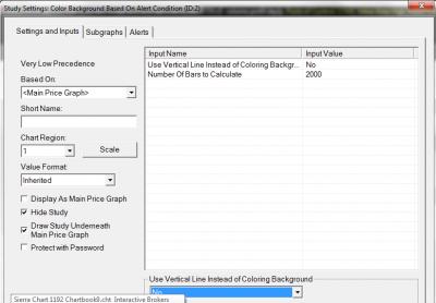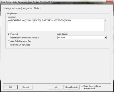 klasicky přístup pro přidání studie Analysis>Studies v levém slupečku vybrat příslušnou studii a přidat jedna se jmenuje: Time Range Highlight (a pod ní je ještě jedna, podobná) (zatržítka Hide Study si nevšímej), nastavení je prosté druhý způsob je možná trochu složitější (ale musím ho tu prodat, když jsem na něj přišel dřív než na ten výše uvedený): Color Background Based On Alert Condition Zde tři obrázky s nastavením, barvu pochopitelně nějakou stravitelnou, demonstrativně jsem to zkoušel se žlutou. Na posledním obrázku je časová podmínka, opsal jsem ji ze Sierry a změnil čísla , která připomínala hodiny - moc tomu nerozumím, ale funguje to, když jsem napsal ty časy obráceně, tak se barvil celý den a ne jen vybraný úsek) doufám, že to pomůže