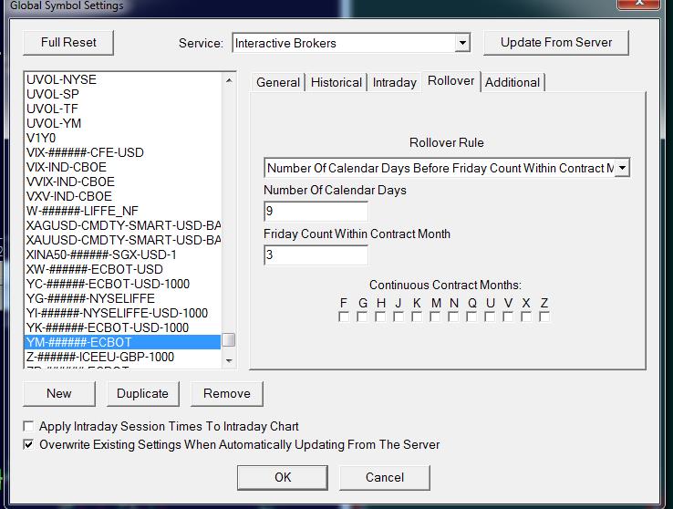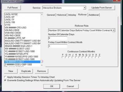 Tak už to mám :) celý odpoledne a večer v pr... :) V nastavení Rollover nesmí být nastavené žádné kontraktní měsíce, nebo musí odpovídat nastavení v General (tzn. skutečné reálné kontrakt. měsíce odpovídající trhu). Já jsem tam měl, nevím proč (?????), zaškrtnuté všechno. H.