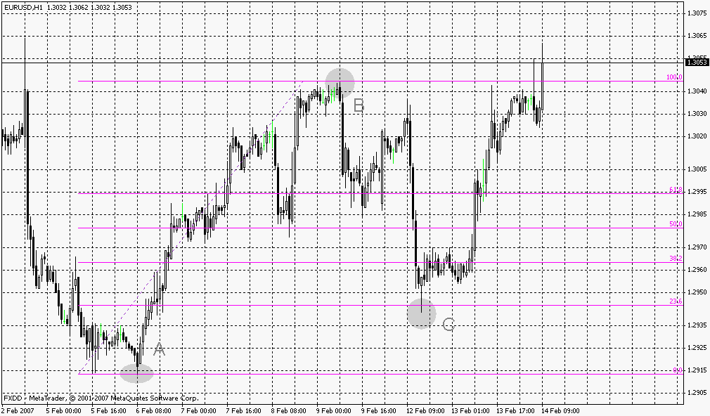 Pred par dnami tu bola debata o fibo urovniach na forexe. Prikladam 2 obrazky grafov s nakreslenymi fibo urovnami. Jedna sa o klasicku formaciu ABCDE, kde idealnou prilezitostou na vstup do long pozicie bol bod C alebo uroven 23,6.