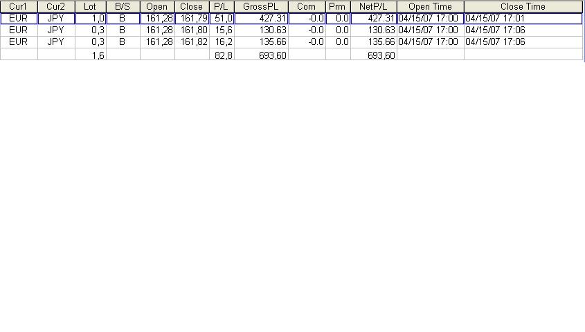 Zdravím nevím jestli jste to někdo včera postřehl ale na EUR/JPY včera těsně po otevíračce nás navštívil sencorův tunel, který trval pouze asi 20 sekund,cena byla na pátečním close, samozřejmě mě to trochu zaskočilo takže opět než jsem se rozhoupal, tak mi to vzalo pouze 3 objednávky, ty další už to zamítlo po změně ceny. Opět mohu říci že pozice se třemi miniloty se otevřely okamžitě, u 1 lotu jsem čekal asi 10 sekund. :) :)
