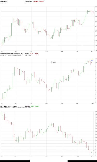 to Miciko: 1) psal jste, že pracujete s Musterdepots na onvista.de, a jako instrument používáte WRT s jasně definovanými parametry. Když jsem si dělal lehkou analýzu titulů, všiml jsem si že často krátkodobě odklesají, což warrantům nedělá moc dobře a potřebují potom větší pohyb zpátky. Neporovnával jste si, jak by dopadly při podobné strategii K.O. se stejnou pákou, keré samozřejmě netěží z volatility, ale dlouhodobě lépě kopírují podklad?
