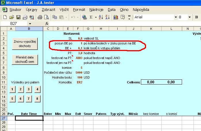 Předně se omlouvám za to , že ten příspěvek tady je vložen dvakrát.. nějak to nešlo tak jsem to vložil podruhé a ono se to uložilo dvakrát... k otázce: jde o to, že jsem nějak nechtěně zadal do kolonky "posun BE po" hodnotu nula a do kolonky BE+ jsem zadal 0,4 a dal jsem vypočítat a program to vzal a výsledek byl více jak optimistický, ale v podstatě jde o nesmysl výsledku- prostě ten výsledek je nesmysl, protože kolonka "posun BE po" nemůže být nikdy menší než kolonky BE+ je to tak ???... je to myšleno : příklad: dám buy na 100.. cena jde na 99, 98 pak na100 101 102 103 104 atd. a pokud zadám do kolonky "posun BE po" 4 a BE+ dám 2 tak když cena vystoupá na 104 tak se mi SL posune na 102... chápu to správně??? předem děkuji za ochotu to vysvětlit