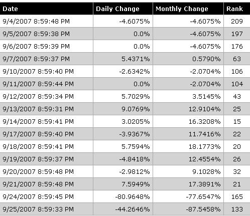 no moj nick je taky ako mam tu :) minule kolo mi nevyslo, cely cas som bol okolo 15-30 miesta a nakoniec som urobil obrovsku chybu z nepozornosti a stalo ma to hodne vela prachou, tak nic moc, ale teraz sa trosku s tym hram, nemam prakticky co stratit , a tak sa pokusim ist spat , aspon do top 10 by to byt mohlo, ak nebudem moc riskovat