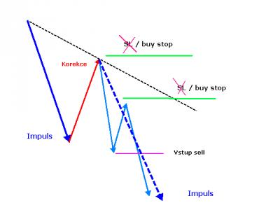 Hedg nepoužívá se vždy a všude . Jen při určitých podmínkách. Mimochodem pro vstupy vyhledávám jen takovou příležitost. Identifikuji vlnu korekci a vidím impuls který mě zajímá. Snažím se abychom vstup odpovídal podmínkám jak na obrázku. V tomto případě používám hedging. Kromě toho SL provukuje nektere "moc slušné" brokery ( jako napriklad Saxo , ktery umí perfektně sbírat SL i na severu i na jihu a pak se tváři že se nic nestalo ).