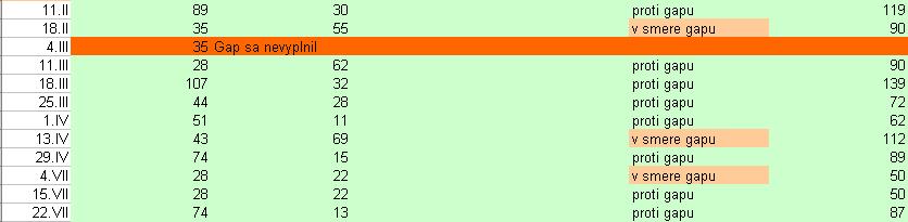 ked uz je rec o tych gapoch, mam tu taky maly backtest na librojenik, do vecera budem mat este nejake ine pary od 11.2 do dnes sa vytvorilo 12 Gapov co stali za povsimnutie, to jest nad 25 pipsov prvy stlpec je velkost gapu, druhy jehodnota po otocenie , posledny stlpec je potencial gap ucize otocenie az po uzavretie gapu, a pre pozicnych je tam kolonka smer trendu, aby vedeli aky smer si trh vybral. ci proti gapu alebo v smere gapu
