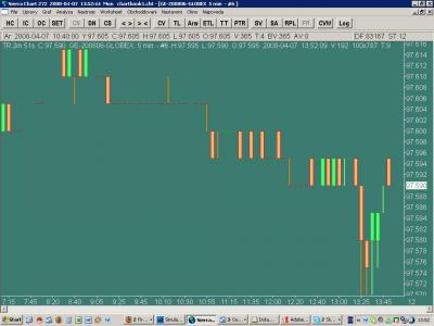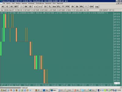 Me se zda, ze je popsana technika se dvema kontrakty vhodna jednak pro daytradera, ktery pruzne posouva prikazy, a pak take pro trh, ktery jde kontinualne, bez vetsich gapu. Eurodollar zatim otestovany nemam, ale v zemedelskych komoditach behem par hodin prestavky (treba prestavka na ECBOTu od 6 rano do 9:30 rano) vznikaji velike skoky.