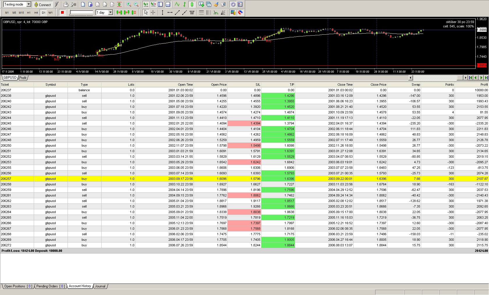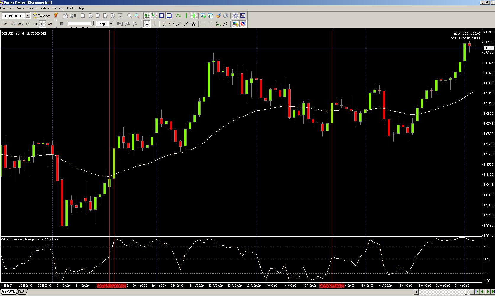 problem bude v prekreslovani indikatoru, alebo datach, , v druhom pripade som si vsimol ze cele testy som vlastne robil na EMA 34 a nie SMA 34, takze v tom bude chyba. ospravedlnujem sa :) inac ked beriem daky signal, je treba povedat ze prihliadam hlavne na graf a beriem velkost sviecky, takze takychto nezrovnalosti moze nastat viac, ale na druhu stranu, je to robene vo Forex testeri, graf som dopredu nevidel, takze nejaku vypovednu hodnotu to ma :) kazdopadne je to individualne, myslim ze keby pracujeme s R_W% s inou kratsou periodou povedzme 5-10 lebo s roznou periodou MA, budu vysledky podobne