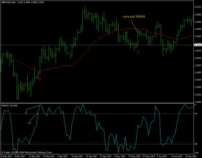 Airmike: Díval jsem se na výsledky testu GBPUSD 1D TF, ale nejsou mi jasné některé věci ohledně vstupů: píšeš, že nakupuješ nebo prodáváš, pokud se R%W změní o 30% a cena je nad(long) nebo pod(short) SMA34. Přikládám graf, kde jsem šipkou označil 2 poslední vstupy(na close) uvedené v testu. U prvního vstupu ale nesouhlasí podmínka změny R%W alespoň o 30% a u druhého zase nesouhlasí cena nad SMA34. Můžeš mi to prosím vyjasnit? Díky.