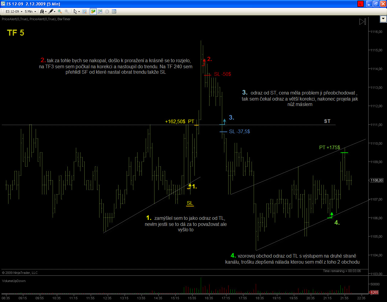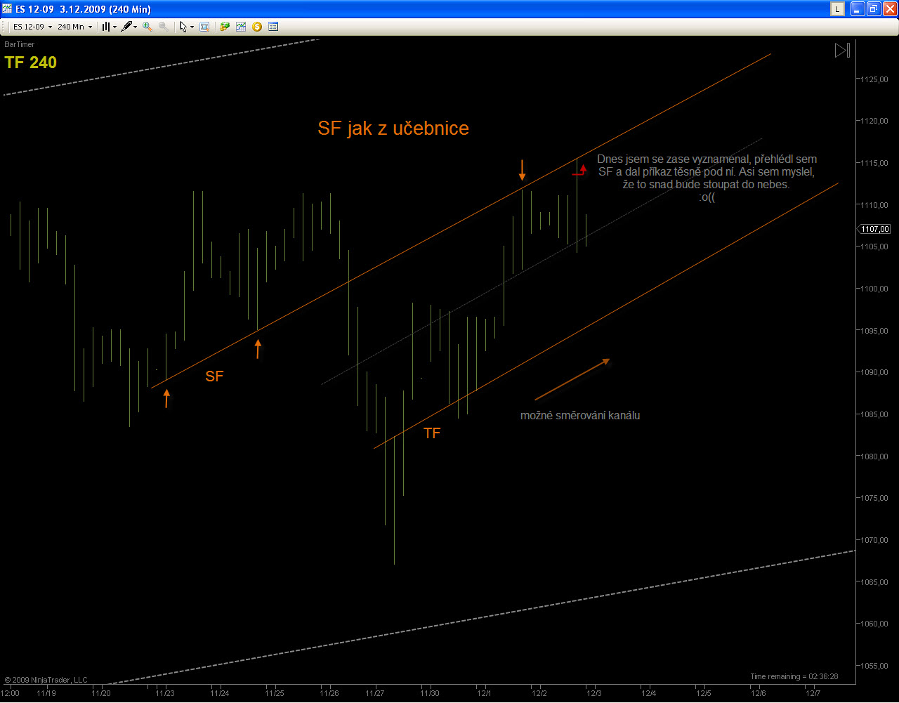 Zdravím ESkaře, Dnes sem zase skončil na SL svojí blbostí, přehlídl sem SF na TF 240 a šel proti ní. Nemrzí mě ani tak ten SL, ale že sem ten odraz od SF mohl zobchodovat s pěkným profitem. (td) Jinak bych měl dotaz na Gladiatora na obchod č.1 který sem bral jako odraz od TL, ale nejsem si jistej jestli je to správný uvažování. Na TF 5 to vypadá kostrbatě, ale na TF 15 už to vypadá jako odraz čitelněji. A vem při tom, prosím Tě, i č.3. I když to nevyšlo, nepřipadá mě že, by to bylo až zas tak špatně. Dík dík dík Mydlo SK dávej sem i špatný obchody, ať se máme z čeho poučovat. Taky sem dávám i pěkný haluze :) Dobrou noc, popř. ráno
