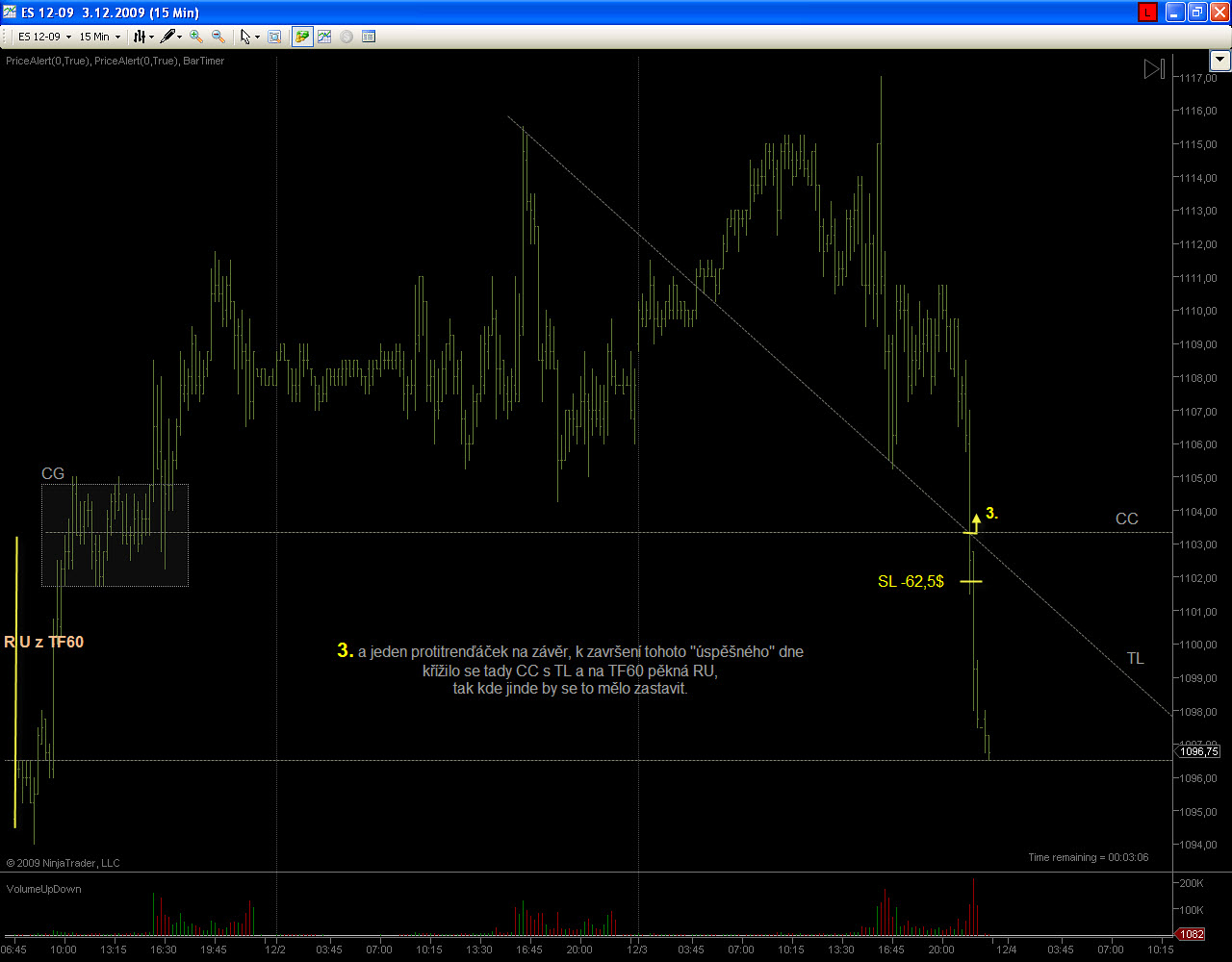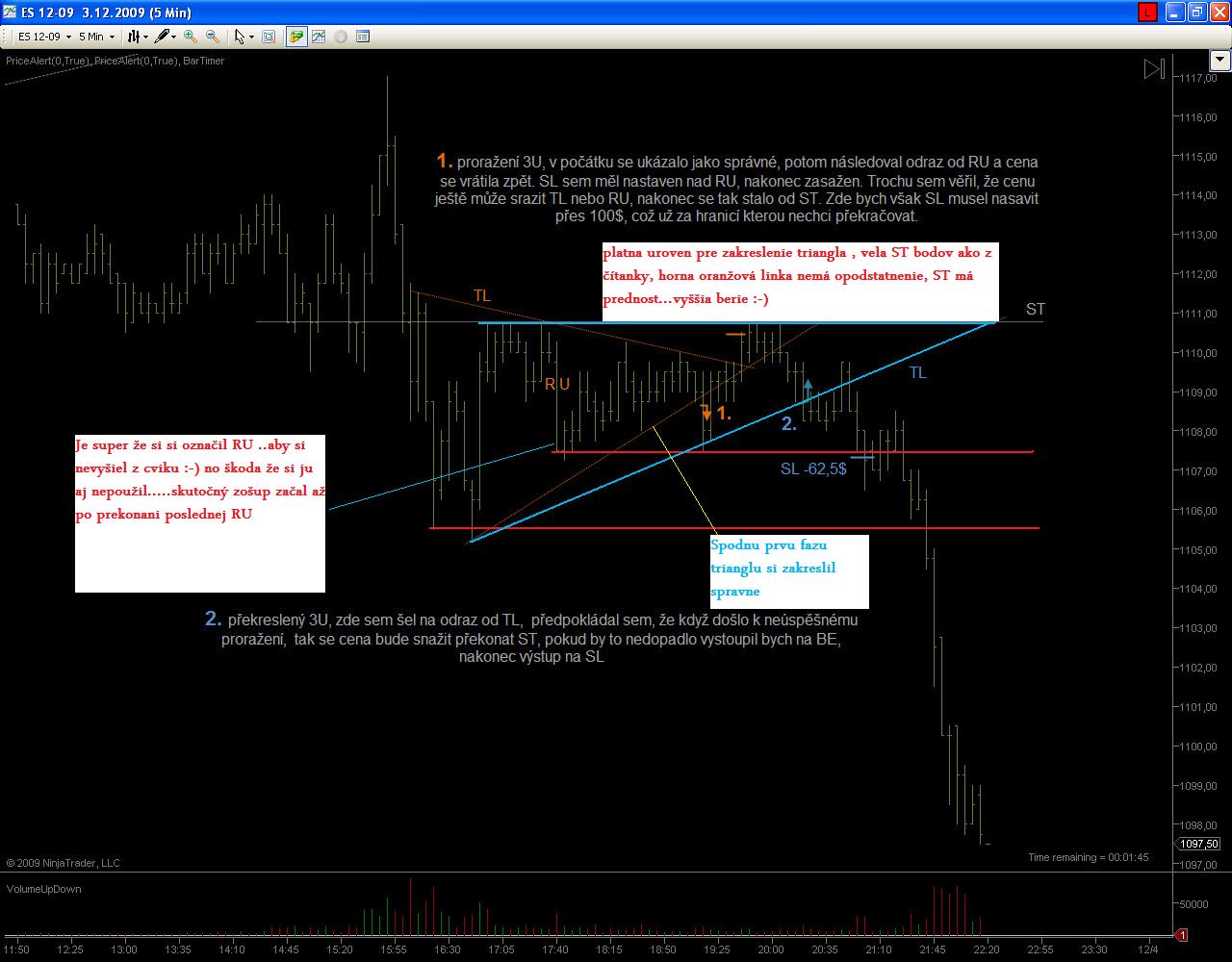casablancax, prvý obchod si nemyslel zle, ale taketo obchody sa robia s meraním volume v posledných úsečkách kde vidíš či nákupná/predajná nálada klesá alebo stúpa. Prvá RU 33 tis- druhá 41 tis-výber ziskov-tretia 31 konsolidácia (zbieranie síl) štvrtá 43tis výber ziskov, piata 30 tis konsolidácia (výrazne kratšia úsečka) šiesta 19tis reverz-obrat trhu potvrdený -posledná prevzatie trhu medvedmi 44 tis. , keby si si to pospájal nejakou krivkou tak ti výjde "rytmus trhu" nieje to pohlad po funuse , ale realne použitie v praxi , meranie sa robí za pochodu kde pozoruješ za aký časový úsek narastá volume a o kolko v porovnaní k poslednej úsečke, niekde som už o tom písal detailnejšie. Teda prvý obchod mohol byť realizovaný v tretej úsečke z hora volume 19 tis limit.príkazom Short ktorý by si umiestnil v bode podla minulosti trhu ak tam bol nejaký (nechce sa mi v tom hrabať)alebo v CC medzi oslednými dvomi úsečkami no SL by bol väčší. Obchodč.2 aj ked sa zdá logicky nebral by som ho nakolko úsečky boli velmi krátke a formácia plochá no na základe vytvorenia ST bodu v ktorom si chcel vstupiť vstúpil by som v tomto bode v druhom prerazení TL nakolko úsečky boli"živšie a spodok CG bol potvrdený. Obchodč.3 Long-totálny nezmysel , vstupoval si vrámci CG-Range v piatej nohe ktorá bola velmi výrazná čo nepredpokladalo vytvorenie dalšej , aj range má svoje pravidlá. Tomu BE nerozumiem odkial sa tam vzalo , ale to je jedno. Slabý verí v šťastie , silný v príčinu. Gladiator028
