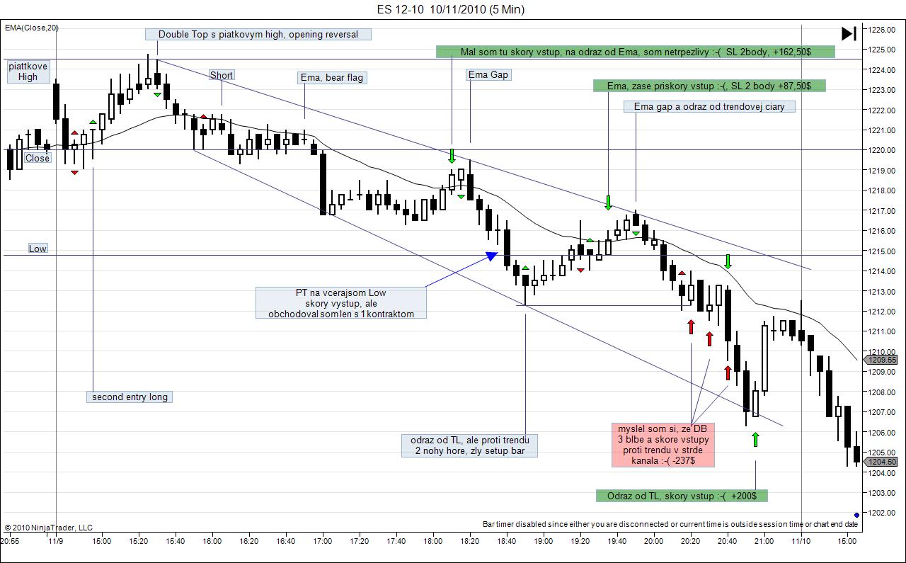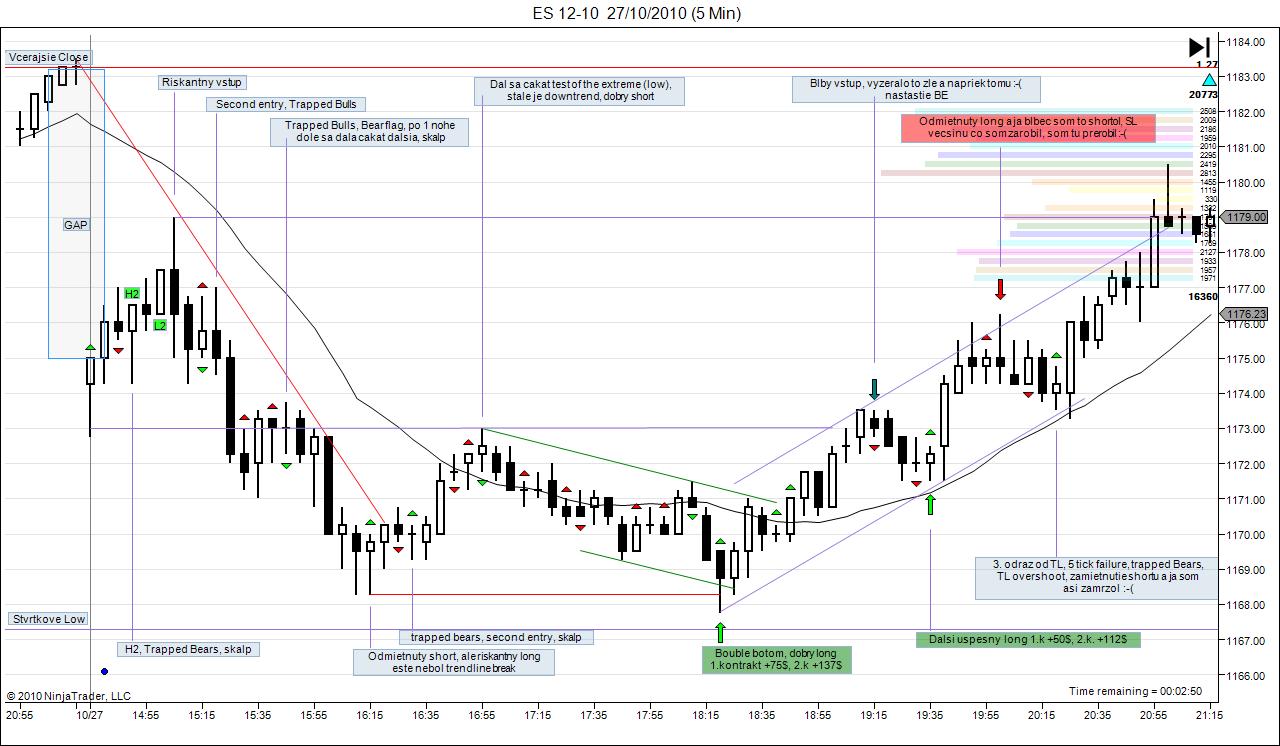 Streda Ku grafom som sa dostal o 17 tej Bol test extremu a vytvaral sa DB Mal som 2 dobre vstupy a zarobil 375$ Potom som sa ''pohadal s trhom''. Bol som presvedceny ze sa robi reverz, short. Aj ked uz bol Trendline overshoot a zamietnutie shortu, nevedel som spracovat informaciu, lebo som bol v shorte. Je to smutne. Od tohoto sa musim odnaucit. Short vyzeral pekne a long zle. Vecsinou to tak byva.