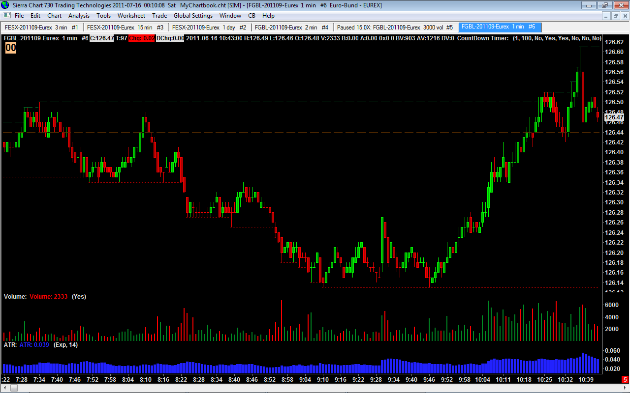 zdravím, chtěl bych poprosit někoho zkušenějšího o komentář, případně help s grafem. Po papertradingovém fiasku s obchodováním korekcí od EMA (v podstatě FinWin bez CCI), kdy mě trh permanentně vyhazoval na SL neboť většina korekcí "selhala" jsem se rozhodl jít na to selským rozumem, odevzdat se do rukou jednoduchosti až "primitivnosti" a začít se konečně věnovat zkoumání kontextu trhu a využití situací. Snažím se tedy popisovat strukturu trhu pomocí swingů HH/HL/LH/LL tak, abych mohl obchodovat např. flipy, trendové DB/DT apod. Mám ale trochu problém se identifikací swingů v trhu. Konkrétně se jedná o trhy FGBL a FESX, které jsou pro mě na nízkých timeframe (1min, 3min) poměrně špatně čitelné. Trh málokdy splní definici swingu (2 x HH, HL a 2 x LH a LL nebo opačně pro low swing). Zkoušel jsem Volume graf a to je o poznání lepší. Jako začátečník bych ale preferoval časový graf. Poradí někdo? Díky moc