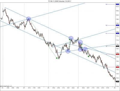 Aby to mělo nějaký smysl, přidávám druhý screen, jak se trh choval s přihlédnutím na TLs. Očekával se SHORT, trh je ve velkém downtrendu, takže má smysl čekat víceméně odrazy ze spodu TLs.