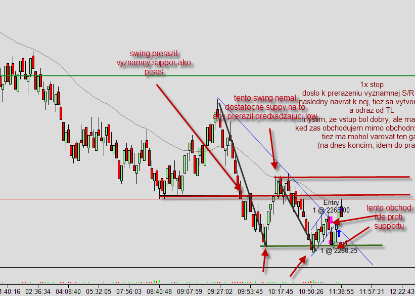 zdravim, ardore hmm mne sa ten tvoj vstup nepozdava. koly tomu ze ten obchod siel proti supportu ktory sa tam vytvoril. hned po prerazeni tej vyznamnej S/R prvy swing bol okay ten prerazil s naslednym otestovanim rezistencie. lenze potom dalsi swing uz nemal supply na prerazenie predosleho low. co je varovanie..ze netreba obchodovat..lebo sa tam moze vytvorit bud to range alebo cena pojde vyssie hladat supply. ja toto chovanie ceny praveze vyhladavam pretoze ked sa tam vytvori range tak ja obchodujem na jeho hranach s/r. lenze tvoj vstup nebol ani na hrane ale v strede potencialneho range.